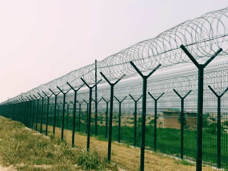 機場護欄網(wǎng)又稱作“Y型安全防御護網(wǎng)”,是由V型支架立柱,加強型焊接片網(wǎng),安全防盜連接件和熱鍍鋅刀片刺籠組成強度和安全防御性級別很高。近年來,被廣泛應(yīng)用在機場,軍事基地等高安全場所。