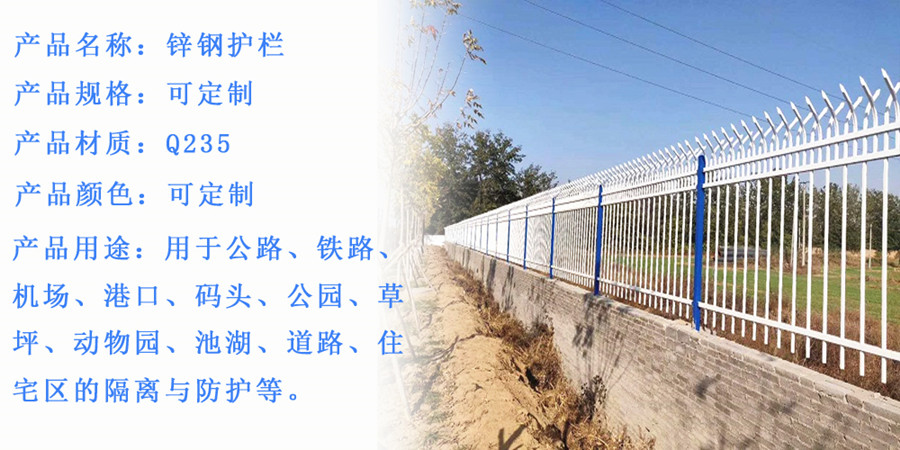 鋅鋼護欄是指采用鋅合金材料制作的用于不同部位、具備不同功能性的圍護欄桿,由于其后期是用靜電噴涂處理表面層,使具有高強度、高硬度、外觀精美、色澤鮮艷等優(yōu)點,成為住宅小區(qū)、工廠院校、道路交通等使用的主流產(chǎn)品。
